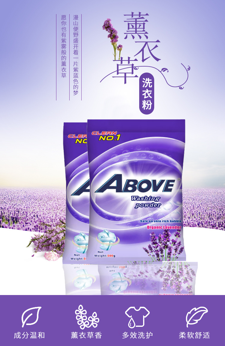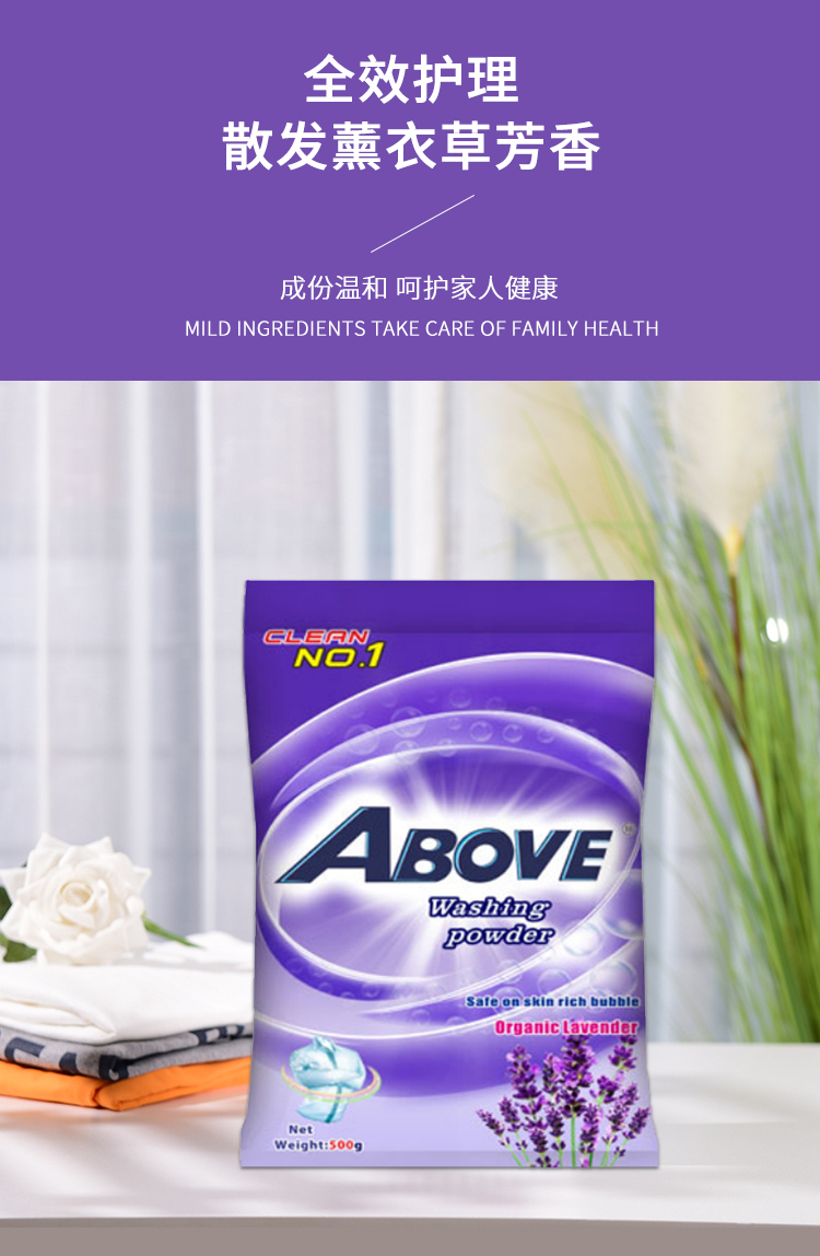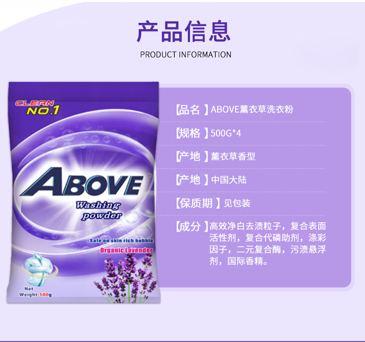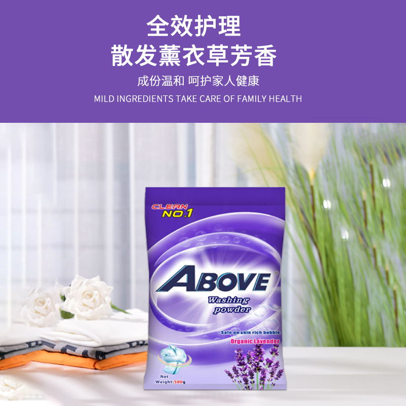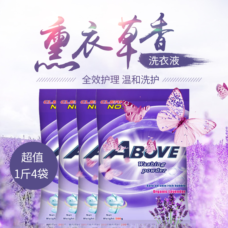 薰衣草洗衣粉除菌去污漬潔凈低泡易漂無磷持久留香500g*4袋實(shí)惠裝