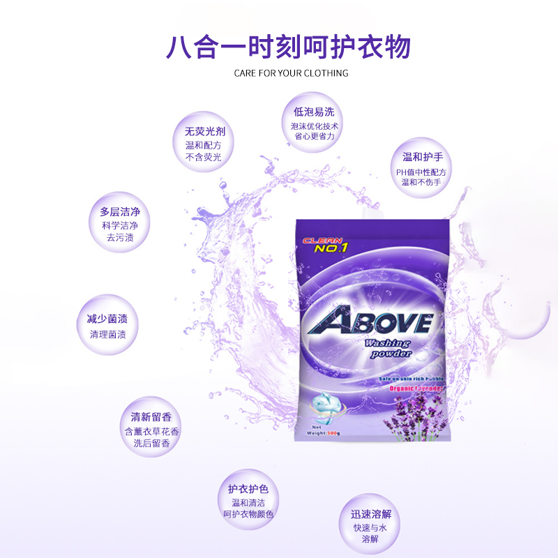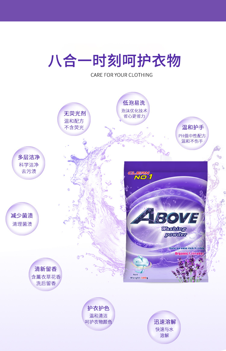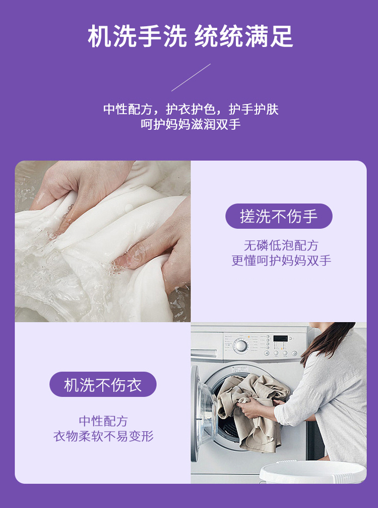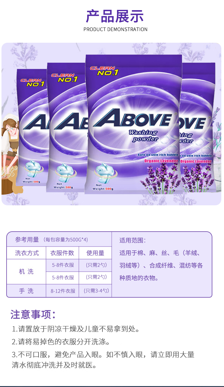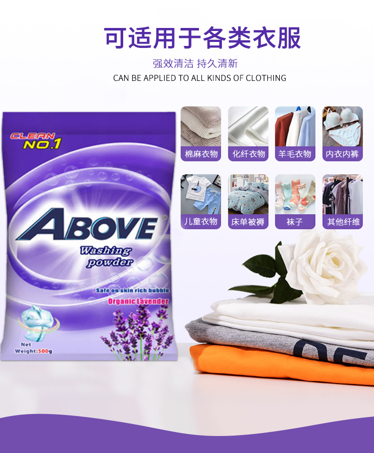 薰衣草洗衣粉除菌去污漬潔凈低泡易漂無磷持久留香500g*4袋實(shí)惠裝