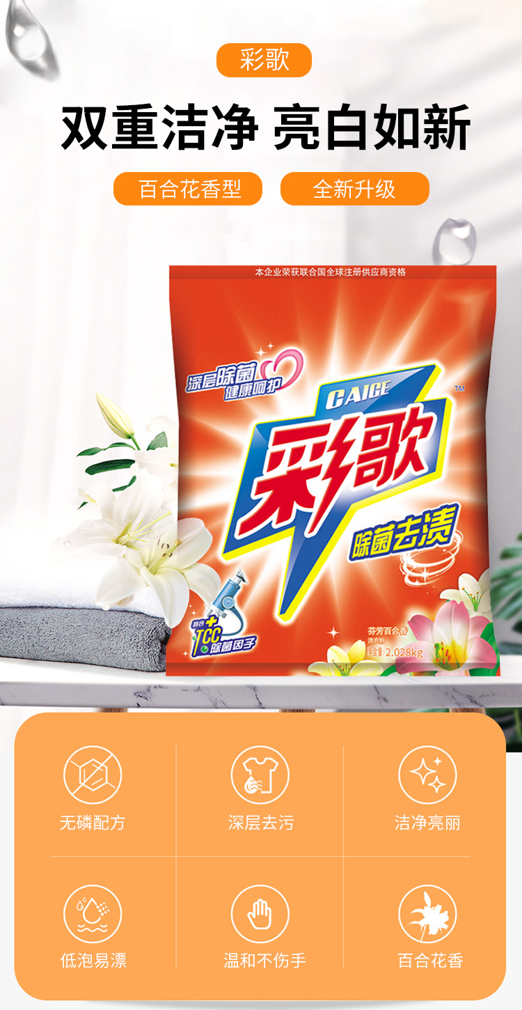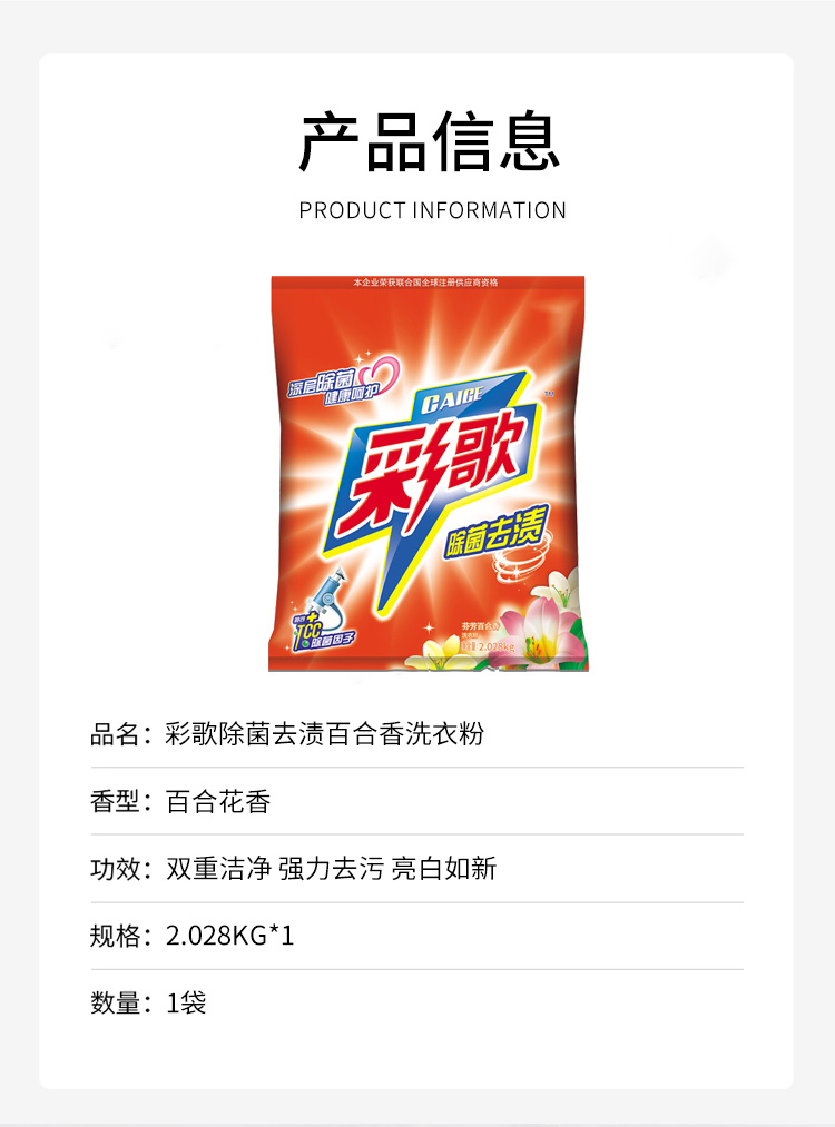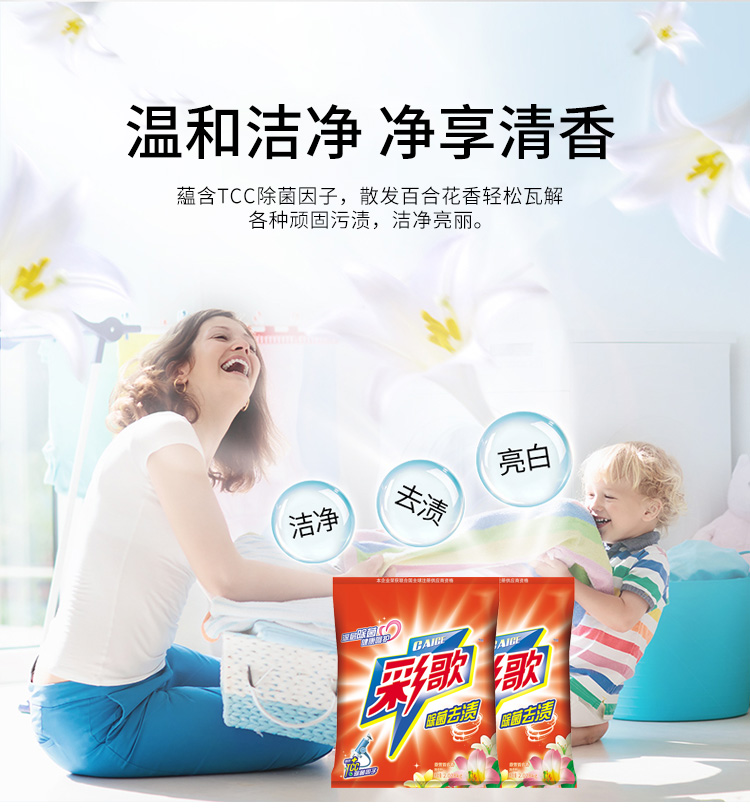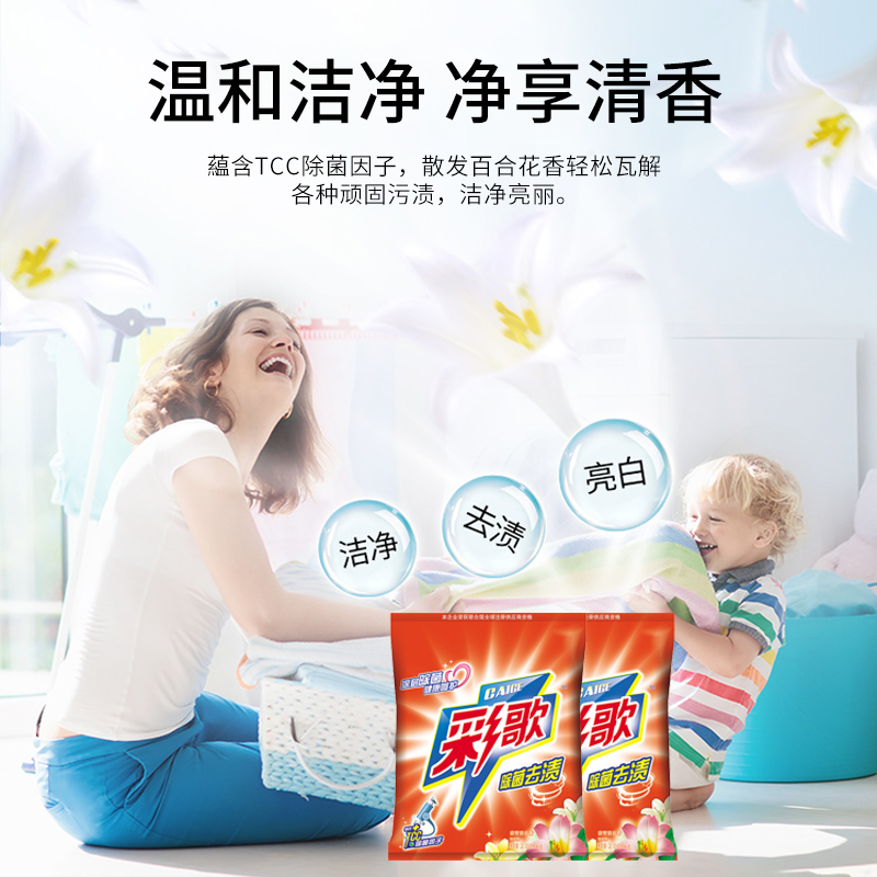 彩歌除菌去漬深層潔凈家用無(wú)磷洗衣粉香味持久大包家庭裝 2.028kg