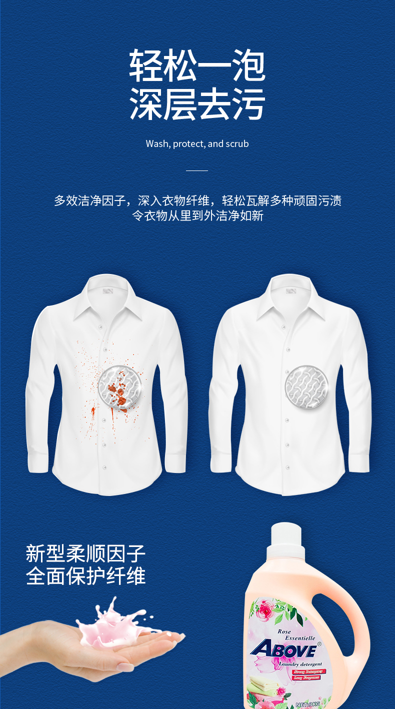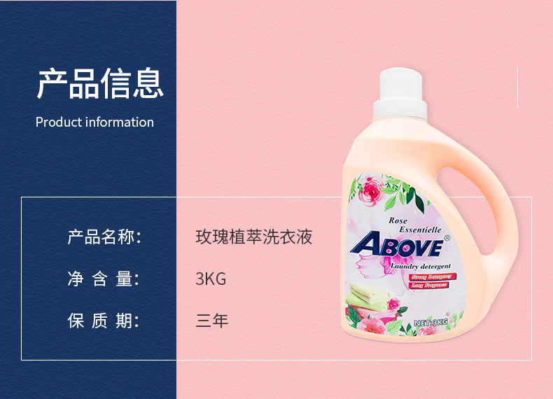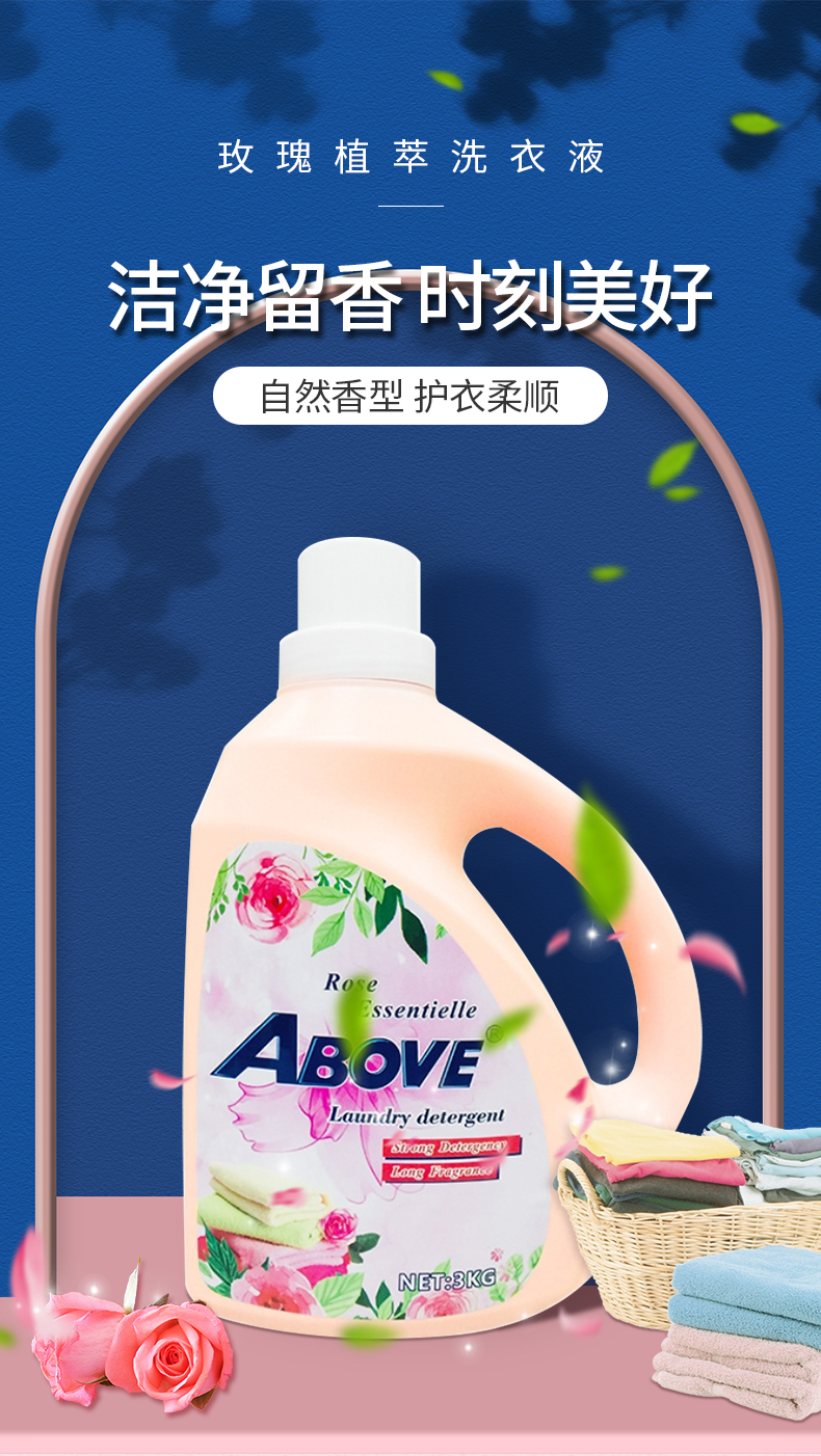 ABOVE玫瑰植萃洗衣液香味持久留香亮白去漬潔凈柔順衣物清洗液3KG